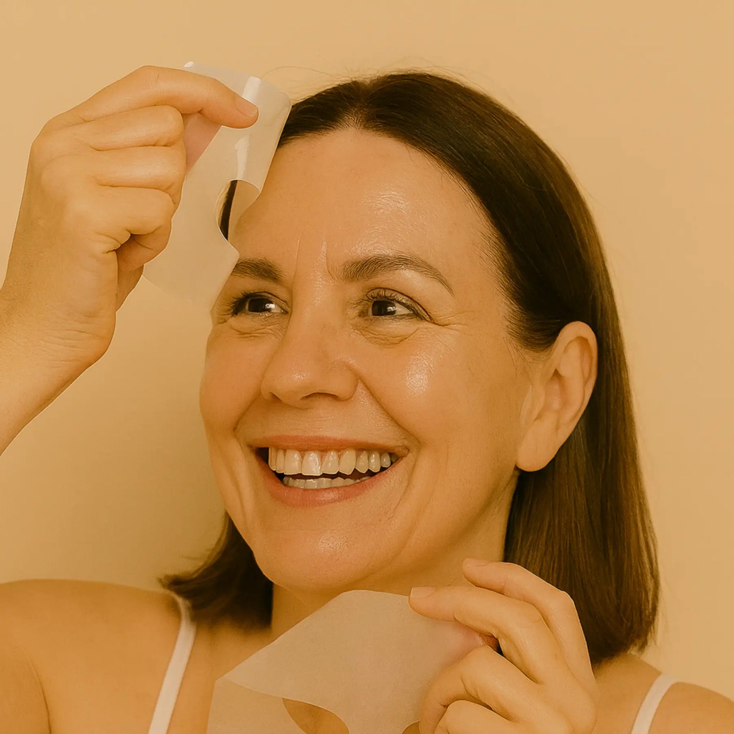 - Appliquez les deux parties du masque sur l’ensemble du visage