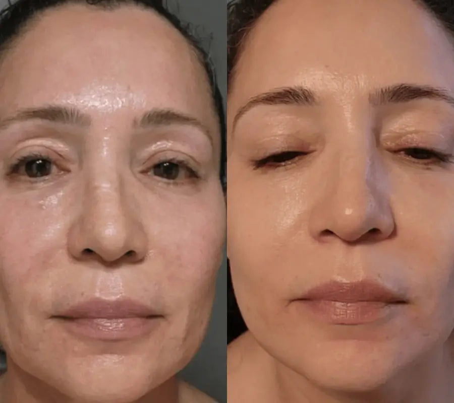 Dès les premières applications, la peau paraît plus ferme, plus lisse et plus éclatante, avec une réduction visible des ridules, des taches pigmentaires et des cernes.